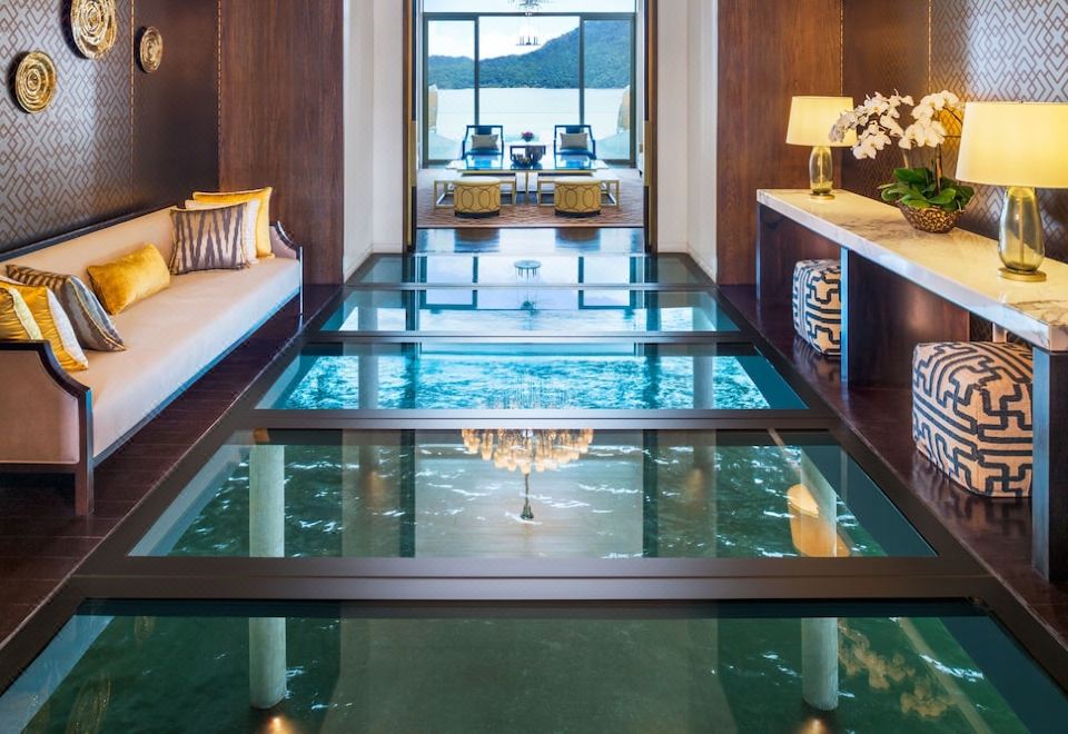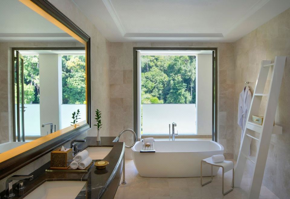 全景套房,一張特大床,海景,熱帶雨林景,角落