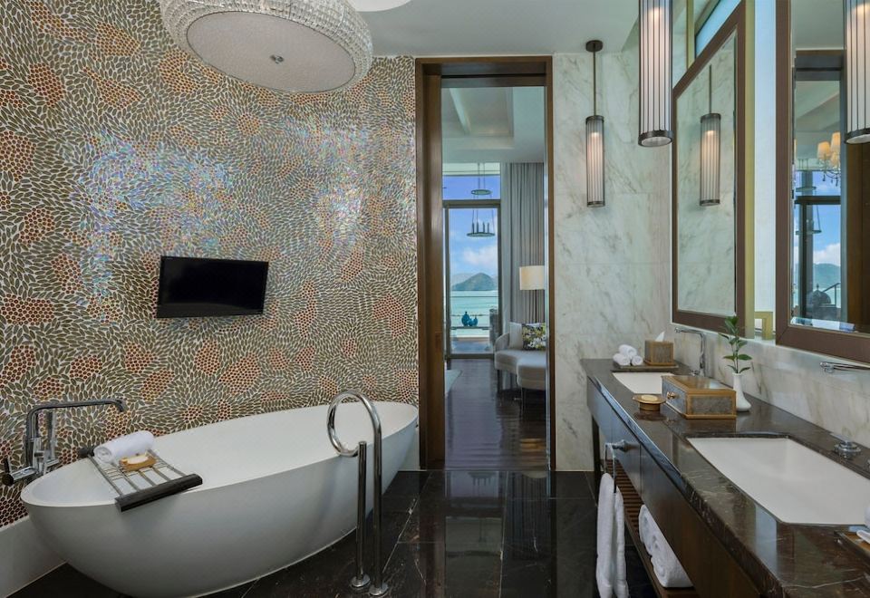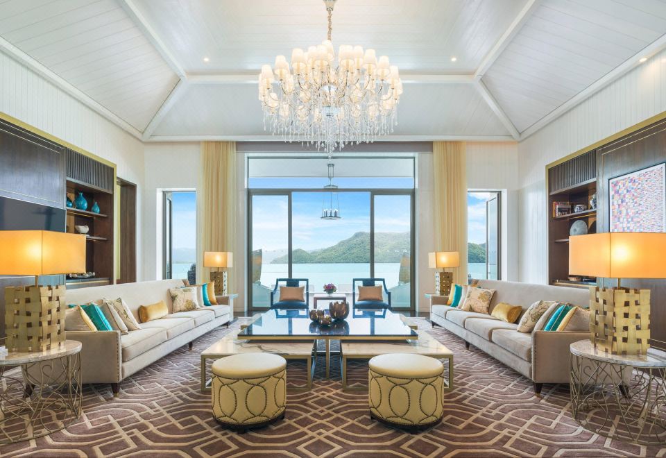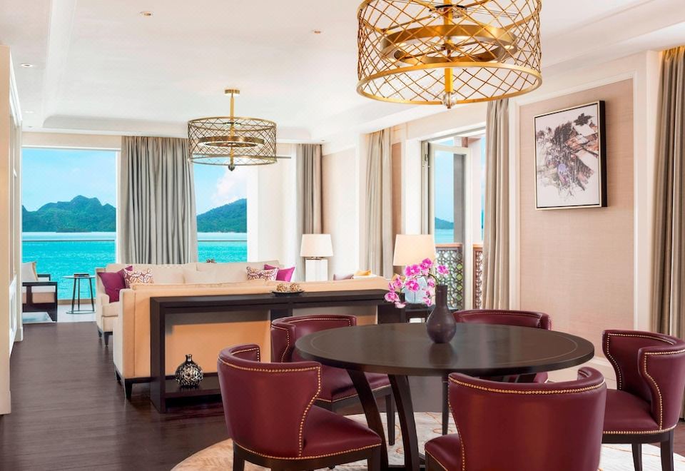 瑞吉套房,兩張雙人床,部分海景